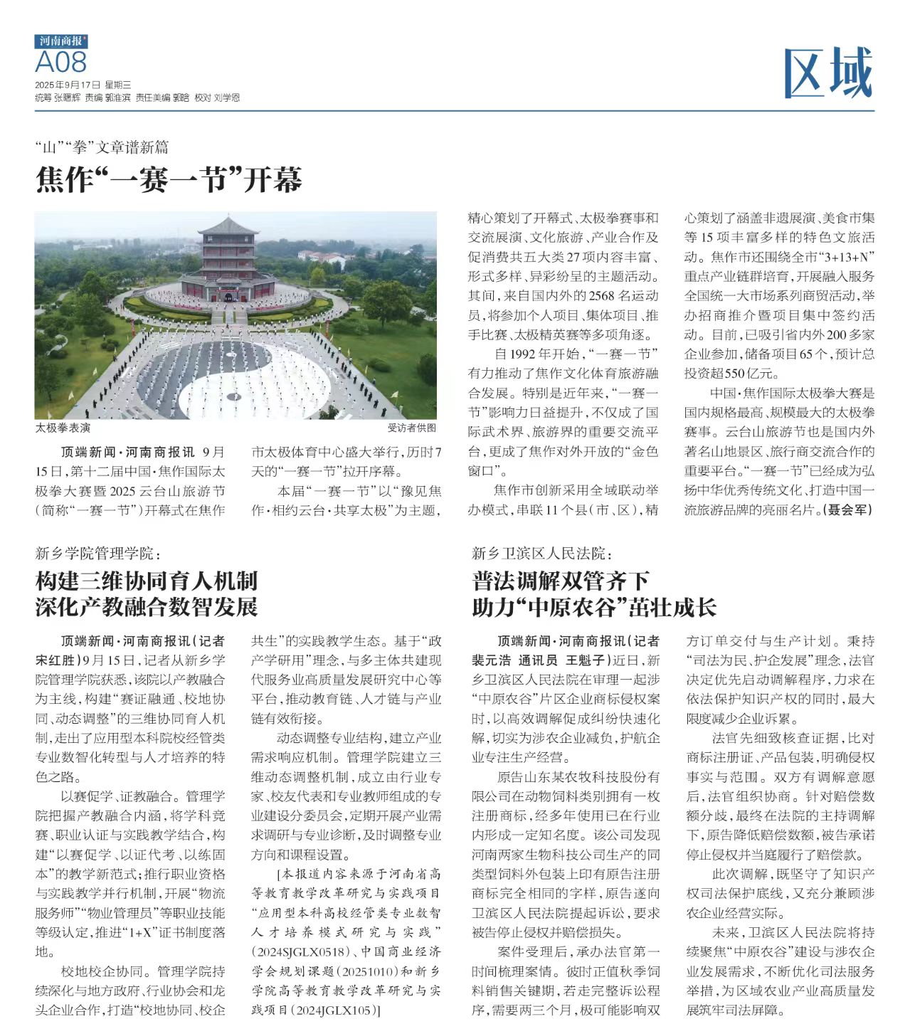 我院教师郭强在《新乡日报》头版发表署...