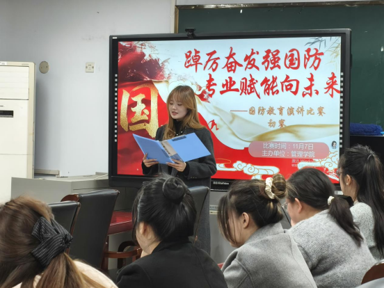 为厚植青年学子国防观念,凝聚爱国强军青春力量,11月3日,管理学院“踔厉奋发向未来,专业赋能强国防”主题演讲比赛初赛在学院会议室顺利举行。本次比赛以“专业赋能”为核心切入点,引导学生将管理学科知识与国防建设需求相结合,展现新时代青年的责任担当与家国情怀,吸引了全院多名学生踊跃报名参与。