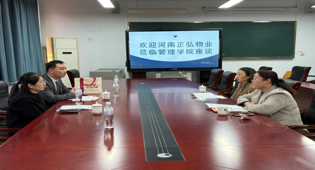 2025年11月19日下午,河南正弘物业管理有限公司运营部部长张新想一行莅临新乡学院管理学院,就深入推进产教融合、校企合作进行座谈交流。管理学院副院长茹茜、物业管理教研室主任朱艳热情接待并展开深入交流。