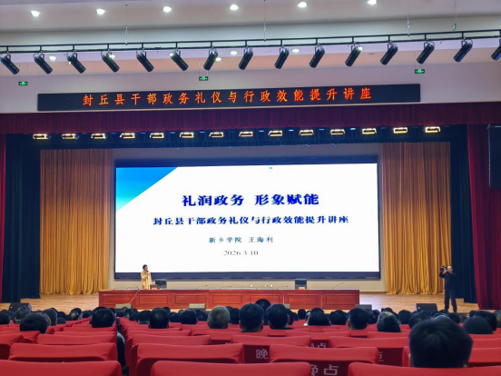 3月10日,受封丘县委组织部邀请,我校管理学院教师王海利为封丘县科级以上干部作“礼润政务 形象赋能”政务礼仪与行政效能提升专题讲座。封丘县委组织部部长张春燕主持,我校驻封丘县边庄村第一书记秦昆列席,全县约600名科级以上干部参加培训。